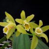2” pot. C Small World is a cross between C luteola and C aclandiae, so this backcross is 75% luteola. The flowers of Small World are full in shape, yellow-to lime green, with a few to many red spots, and a full, pink lip. C luteola flowers are yellow with a frilly yellow lip edged in white, and are fragrant. These plants will be very compact. Main photo shows C luteola; gallery image shows C aclandiae. Young seedlings.